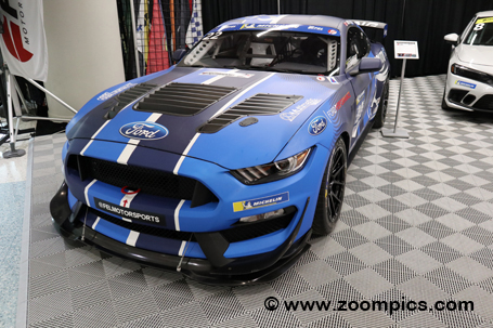 FEL Motorsports had three cars on hand from their racing series. This Ford Mustang competes in the GT4 category of the Sports Car Championship Canada. The naturally aspirated 5.2-liter V8 in the Mustang produces 405 horsepower and will travel from 0 to 100 km/h in 4.6 seconds. The rear-wheel drive car uses a Holinger six-speed sequential paddle shift transmission. The Mustang is driven by Jack Polito, who finished third in last year's championship. |