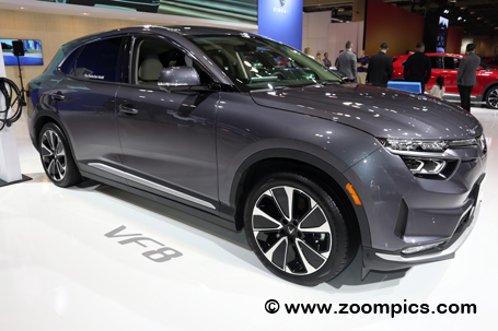 VinFast, a Vietnam-based multinational company, is new to the automotive industry. On display at the AutoShow was the VinFast VF8. This model is available as an ECO or Plus model. The crossover uses dual electric motors. The ECO version produces 349 horsepower and 369 lb-ft of torque. Meanwhile, the Plus model has 402 horsepower and 457 lb-ft of torque. Other differences are wheel size, power seat adjustments and sound systems. VinFast offers a 10-year or 200,000 km warranty. |