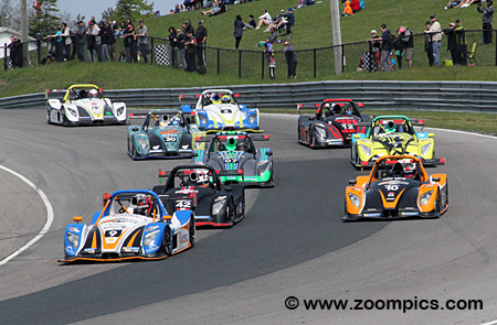 The Emzone Radical Cup Canada series cars are built by the British manufacturer, Radical Sportscars. The company was founded by Mick Hyde and Phil Abbott in 1997. The early vehicles were road legal but were more popular as race cars. The Radicals used in the series are the SR3 model powered by an RPE - Suzuki four-cylinder Double Overhead Camshaft engine with a displacement of 1340-cc, which produces 170-rear wheel horsepower. The chassis is a space frame design with double wishbones, coil springs, adjustable shock absorbers, and roll bars. Stopping the SR3 are four-piston calipers front and rear with vented rotors. The Radicals use cast aluminum wheels fitted with 200/580/R15 tires on the front and 265/605/R16 on the rear. The Emzone Radical Cup Canada opening rounds were held at Canadian Tire Motorsport Park during the Castrol Victoria Day Speedfest. Drivers competed in three contests around the ten-turn 2.459-mile road course. |