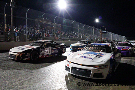 The cars competing in the NASCAR Pinty’s Series are constructed to specifications and rules common to most stock car series. The chassis is a steel tube frame design covered with a fiberglass body and must weigh no less than 3000-lbs. Body styles are from manufacturers such as Dodge (Challenger), Ford (Mustang) and Chevrolet (Camaro). Engine type and displacement are dictated by the make and model of the vehicle. The carbureted eight-cylinder motors produce approximately 550-horsepower. Depending on the gearing, these cars are estimated to have a top speed of 160-mph. Round ten of the 2023 NASCAR Pinty’s Series was race one of a doubleheader at Ohsweken Speedway. Drivers would compete in a 100-lap contest divided into three stages – two twenty-five-lap stages followed by a fifty-lap final around the 0.375-mile dirt oval. The event was called the Freshstone Dirt Classic.