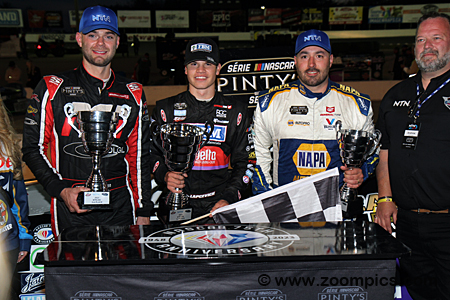 The top three finishers for the opening round of the 2023 NASCAR Pinty’s Series at Sunset Speedway.