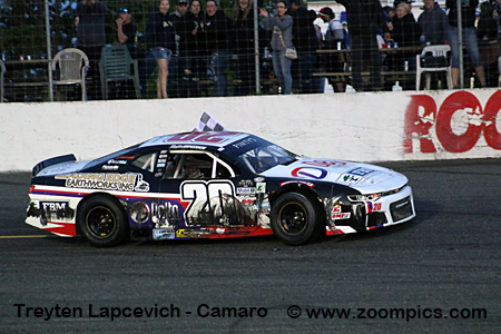 Treyten Lapcevich captured his first NASCAR Pinty’s Series win at last year’s Sunset race.