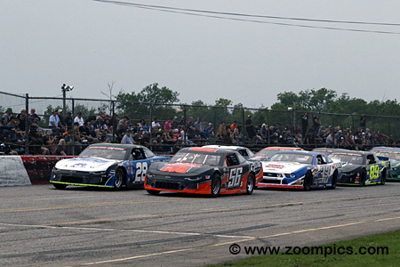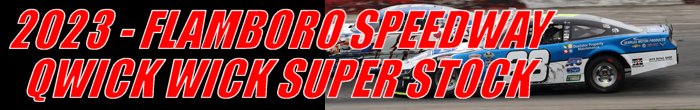 The Super Stock category includes a variety of makes and models from the ‘60s to the current year. The rules used in the class allow some suspension modifications and changes to the bodies. Some Super Stock cars retain the original steel bodies with plastic noses and fiberglass hoods; however, most use fiberglass body panels. They are powered by a modified small-block engines or crate motors from General Motors and Ford. The division serves as a ‘stepping stone’ for those drivers who aspire to compete in the Pro Late Model category. A new restart procedure was introduced this year by series officials for the APC United Late Model and Qwick Wick Super Stock divisions called the 'choose rule.' On restarts, competitors are allowed to choose their lane. Their selection may be determined by the condition of the track, how many cars are ahead of them or the handling of their vehicle. If a driver changes their choice after the designated 'choose spot,' they must start from the rear of the field. Round three of the 2023 Qwick Wick Super Stock Series was held at Flamboro Speedway. Drivers would compete in a fifty-lap contest around the 1/3-mile semi-banked asphalt oval. |
