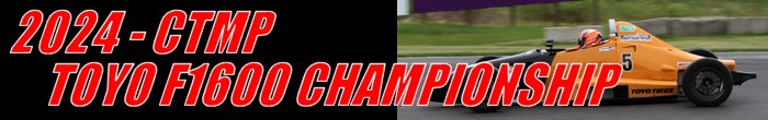 The manufacture date for the individual car and not the model is used to determine the year split and whether a vehicle is categorized as F1600A or F1600B. The first weekend of the 2024 Toyo Tires F1600 Championship Series was held at Canadian Tire Motorsport Park during the Victoria Day Speedfest event. Drivers would collect points in three contests around the ten-turn 2.459-mile road course.