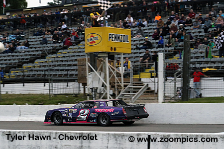 Hawn won with the new car in the opening round at Flamboro Speedway.