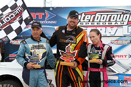 The top three finishers for the final round of the 2024 JRS Auction OSCAAR Hot Rod Series held at Peterborough Speedway’s 31st Annual APC Autumn Colours Classic.
