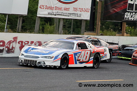 Sunset Speedway regular Dwayne Baker drove the familiar No. 48 Zancor Homes / Nisco National Leasing Ford Fusion.