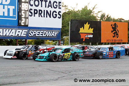 The cars competing in this class are purpose-built open-wheel vehicles. The Modifieds use a steel tube frame chassis, which is no less than 1-3/4-inch outside diameter with 0.095-inch wall thickness. Bodies are made of sheet metal, with the driver’s compartment and engine bay covered. The cars may be any make or model, but they tend to have little to no resemblance to their road-going counterparts. The engine option selected by the car owner determines the weight of the vehicle. A Modified using 350-horsepower Crate Engine is the lightest at 2,600 pounds and 2,775 pounds is required for a car powered by a Built Motor. Weight may be added or removed depending on the choice of transmission. Many of the other rules governing the OSCAAR Modified class are for driver safety and to keep costs down. Round ten of the 2024 Just Foam It OSCAAR Modified series was held at Delaware Speedway during the Great Canadian Race Weekend. Drivers competed in a twenty-five-lap contest around the ½-mile semi-banked asphalt oval. Weather impacted the event, forcing officials to reduce the practice to ten minutes and eliminate the heat races.
