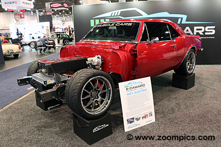 An example is the E-Camaro. The company offers bolt-in and custom packages for 1967 to 1969 Camaros, which are 100% electric.