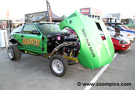 The front end of the CamHoStang is a Chevrolet Camaro, the center section is a Honda CRX, and the back end is a 1968 Ford Mustang.