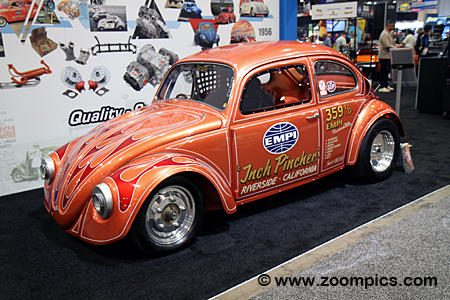 The Inch Pincher IV is a 1958 Volkswagen Beetle finished with Apricot Metalflake paint.