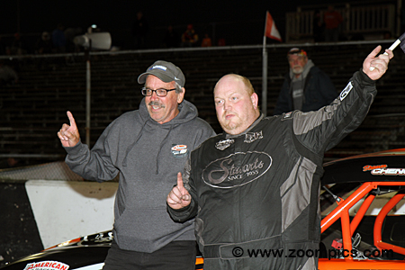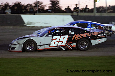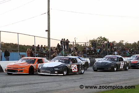 The Super Stock category includes a variety of makes and models from the ‘60s to the current year. The rules used in the class allow some suspension modifications and changes to the bodies. Some Super Stock cars retain the original steel bodies with plastic noses and fiberglass hoods; however, most use fiberglass body panels. They are powered by a modified small-block engines or crate motors from General Motors and Ford. The division serves as a ‘stepping stone’ for those drivers who aspire to compete in the Pro Late Model category. The starting grid was set by inverting the sixth fastest qualifiers. Unfortunately, Officials flagged the race early due to on track incidents. |