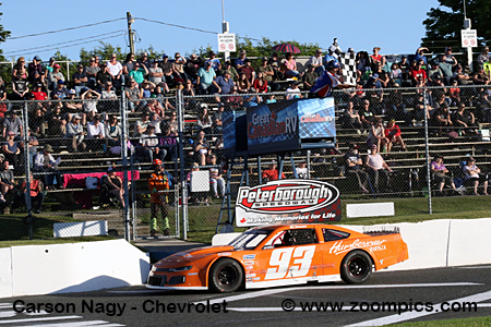 Beside DiBello is the second fastest qualifier and defending race winner, Carson Nagy, driving the No. 93 Queenston Chevrolet Buick GMC Chevrolet Camaro.