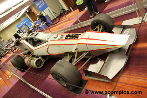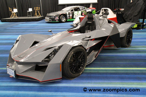 | This creation from Fab 12 - 'Bringing Concepts to Life' is an interesting build in the Performance Pavilion. The company has built vehicles such as the Batberry, which is a replica of the Batmobile from the 1989 Batman film. But on display is the Nemesis R1. The company has designed, fabricated, and made street-legal the single-seater street car. The concept drew inspiration from fighter jets, Formula E, Ariel Atoms and BAC Monos. The 2,000 lb. vehicle is powered by a mid-engine Subaru EJ207 STI engine. The EJ207 is a 2.0-liter flat four-cylinder engine with an aluminum engine block and cylinder heads. The double-overhead-camshaft motor is turbocharged and produces 310 horsepower. |