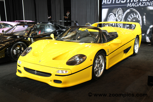| This 1997 Ferrari F50 is in the Auto Exotica exhibit. The F50 was constructed to celebrate Ferrari's 50th anniversary. The car was unveiled at the 1996 Geneva Auto Show and appeared at the Tokyo Motor Show in the same year. Only 349 units of this full carbon fiber automobile were built. The Ferrari is powered by a 4.7-liter V12 engine, which produces 514 horsepower and 347 lb.-ft. of torque. Mated to the motor is a six-speed manual transmission. The Ferrari travels from 0 to 60 km/h in 3.8 seconds and has a 325 km/h top speed. The F50's dry weight is 2,712 lbs. |