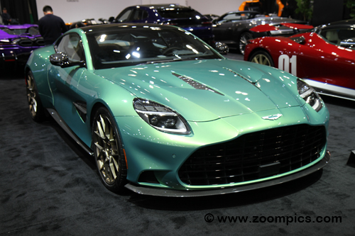 This is the new Aston Martin Vanquish. The third generation Vanquish is powered by a new twin-turbocharged 5.2-liter V12 mated to an eight- speed ZF gearbox. The 5.2-litre V12 has been completely re-engineered from the original motor, which debuted in the Aston Martin DB11 in 2016. The latest model features a new block, cylinder heads, intakes, exhaust ports, and turbochargers. The new design produces 824-horsepower and 738 lb.-ft. of torque. The Vanquish has a carbon fiber body and is finished in Iridescent Emerald paint. |