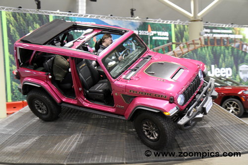 | Camp Jeep has become a regular feature of the Canadian International AutoShow. Camp Jeep offers showgoers a chance to experience the legendary off-road capabilities of Jeep vehicles without leaving the AutoShow floor. The artificial obstacles occupy a large area of Level 300 in the North Building. Being demonstrated is the Jeep Rubicon 4xe. The 2-liter four-cylinder engine, when combined with the Hybrid system, has a net output of 375 horsepower at 5,250 rpm. The battery pack for the Hybrid unit is a 400-volt lithium ion and the Jeep has a fuel capacity of 17.2 gallons. The vehicle’s curb weight is 5,226 lbs. |