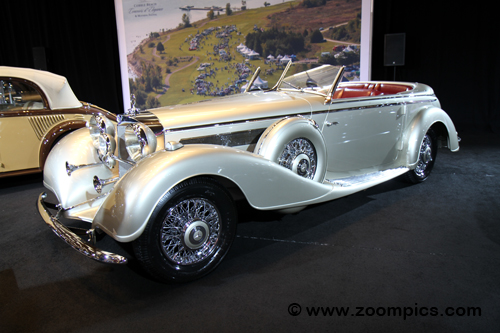 The Cobble Beach Classics display had examples of rare Mercedes-Benz. One such model was a 1938 Mercedes-Benz 540K Sport Tourer. The 540K model was one of the largest cars of its time. It was equipped with a straight 8-cylinder engine with a displacement of 5,401 cubic centimeters. The motor used twin pressurized updraft carburetors, which developed 115 horsepower. In addition, the engine included a Roots supercharger, which could either be engaged manually for short periods or automatically when the accelerator was pushed fully to the floor. This increased the output to 180 horsepower, enabling a top speed of 170 kmh. |