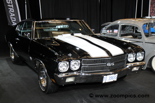 | One of the most desirable muscle cars ever built was located in Auto Exotica. The 1970 Chevrolet Chevelle Super Sport 396 uses a GM L34, which is a 396 cu.in. 350-horsepower big-block V8 engine. Mated to the motor is a Turbo Hydramatic 3-speed transmission. This model is equipped with a special suspension, "power dome" hood, black-accented grille, resilient rear-bumper insert and wide-oval tires on sport wheels. This Chevelle has the 375-horsepower cowl induction option; however, few were sold in favour of the newly introduced LS5 454 cu.in. engine during late-1969. |