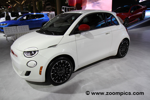 The Italian company Fiat was founded in 1889, but in 2012, it became a part of Fiat Chrysler Automobiles and, in 2021, became a subsidiary of Stellantis. On the show floor was this 2024 Fiat 500e. The car is powered by a 400-volt, 42-kWh front electric drive motor. The transmission is a front / rear offset one-speed gearbox. Safety features include Intelligent Speed Assist, Lane Departure Plus, Park-Sense Rear Park Assist System and Pedestrian / Cyclist Detection with automatic emergency braking. Some standard features include a regenerative braking system with E-Coasting, E-Mode Selector, and a 7-inch digital, full-colour driver information display. |