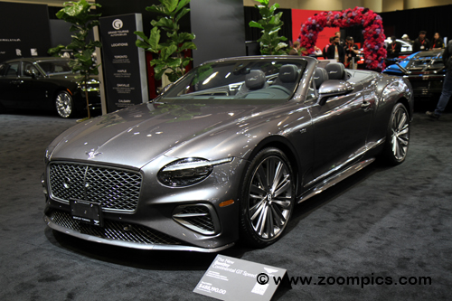 | The fourth generation 2025 Bentley Continental GT Speed convertible has an MSRP of $488,190. The Continental GT Speed features a 4.0-liter twin-turbocharged V8 engine paired with a plug-in hybrid system, which produces 771 horsepower and 738 lb.-ft. of torque. It can accelerate from 0 to 60 mph in 3.1 seconds and reach a top speed of 208 mph. This model shifts from the iconic W12 engine but still showcases Bentley's commitment to performance and luxury. The powertrain is coupled with an eight-speed dual-clutch transmission and an all-wheel-drive system. The Bentley is finished in a colour called Magnetic. |
