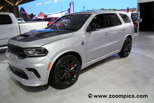 | Dodge showcased the 2025 Durango SRT Hellcat. The Hellcat has a base price of $151,180, including $15,569 in discounts. Standard equipment includes competition suspension with adaptive damping, Quadra-Trac active on-demand transfer case with Selec-Trac system, heated and ventilated front seats, heated second-row seats, and SRT steering wheel with paddle shifters. The Durango has a 6.2-liter HEMI SRT Hellcat V8 engine, which delivers 710 horsepower and 645 lb.-ft. of torque. The all-wheel-drive vehicle has a TorqueFlite 8HP95 eight-speed automatic transmission. The Hellcat is finished in Triple Nickel paint. |