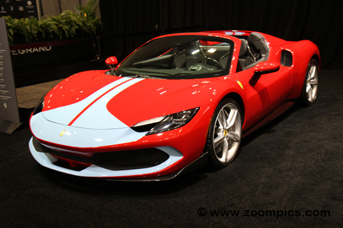 There were several Ferraris throughout the AutoShow, including this 296 GTS model. The 296 is a two-seater, offered as a GTB coupe and a GTS folding hard-top convertible. It is a plug-in hybrid with a rear mid-engine, rear-wheel-drive layout, and its powertrain combines a 3.0- liter twin-turbocharged 120-degree bank angle V6 with an electric drive fitted between the engine and gearbox. The 296 can be driven in electric-only mode for short distances. The combined power output is 819 horsepower. Bolted to the engine is an 8-speed dual-clutch transmission. The car accelerates to 100 km/h (62 mph) in 2.9 seconds, and the top speed is specified as over 330 km/h (205 mph). The GTS has a curb weight of 3,395 lbs. |