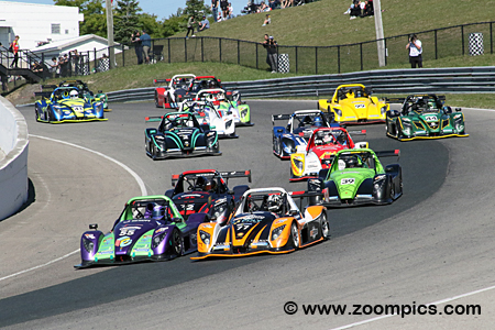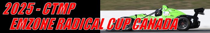The Emzone Radical Cup Canada series cars are built by the British manufacturer, Radical Sportscars. The company was founded by Mick Hyde and Phil Abbott in 1997. The early vehicles were road legal but were more popular as race cars. The Radicals used in the series are the SR3 model powered by an RPE - Suzuki four-cylinder Double Overhead Camshaft engine with a displacement of 1340-cc, which produces 170-rear wheel horsepower. The chassis is a space frame design with double wishbones, coil springs, adjustable shock absorbers, and roll bars. Stopping the SR3 are four-piston calipers front and rear with vented rotors. The Radicals use cast aluminum wheels fitted with 200/580/R15 tires on the front and 265/605/R16 on the rear. Introduced last season was the Masters category for drivers 40-year of age and older. The class has a separate Masters championship. The final rounds of the 2025 Emzone Radical Cup Canada were held at Canadian Tire Motorsport Park during the Labour Day Weekend Sprints. Drivers would compete in two forty-minute contests around the ten-turn 2.459-mile road course. |