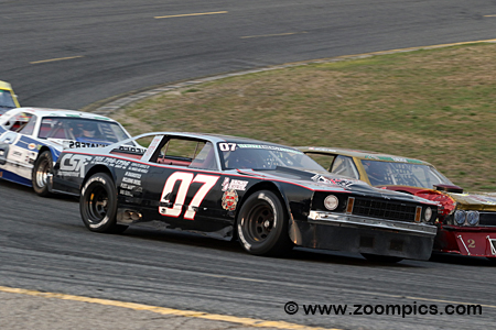On the outside of Hawn, driving the No. 07 1976 Chevrolet Nova is Dan Archibald.