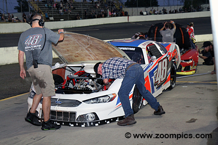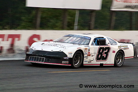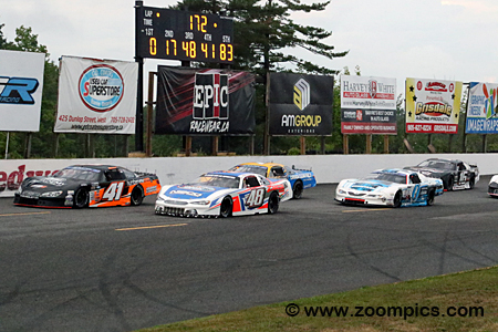 Pro Late Models are constructed according to specifications and controls standard to most stock car series. The chassis is a tube frame covered with a fiberglass body. Popular body styles include the Chevrolet Camaro, Chevrolet SS, Ford Mustang, Ford Fusion and Toyota Camry. Depending on the engine choice, a car can weigh as much as 2800 lbs. Unlike the popular APC series, this event allows teams to compete with crate engines or built motors. There are also rules restricting the options for transmissions, ignition components, body material, brakes, etc. The Junior Hanley Classic was held on July 26 at Sunset Speedway. The event honoured Canadian Motorsport Hall of Famer Junior Hanley, with $5,000 going to the race winner. Drivers competed in a 172-lap contest around the 0.333-mile banked asphalt oval. The contest also included a lap-100 competition caution period, where teams had the option to use the five-minute break to make adjustments. Drivers who chose not to pit maintained their track position. During the race, some light rain caused officials to run laps under the caution. However, after the restart, the rain returned. The radar indicated that a heavier band was approaching. A decision was made to checker the race on lap-137. |