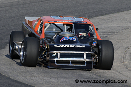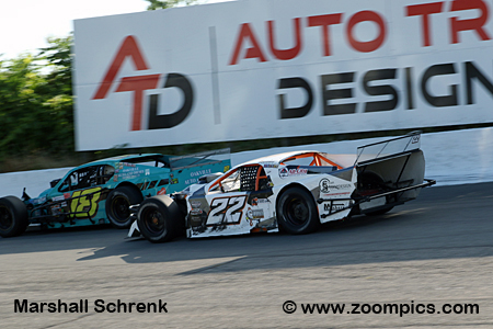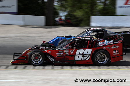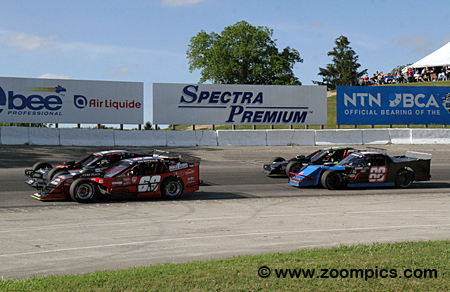 The cars competing in this class are purpose-built open-wheel vehicles. The Modifieds use a steel tube frame chassis, which is no less than 1-3/4-inch outside diameter with 0.095-inch wall thickness. Bodies are made of sheet metal, with the driver s compartment and engine bay covered. The cars may be any make or model, but they tend to have little to no resemblance to their road-going counterparts. The engine option selected by the car owner determines the weight of the vehicle. A Modified using 350-horsepower Crate Engine is the lightest at 2,600 pounds and 2,775 pounds is required for a car powered by a Built Motor. Weight may be added or removed depending on the choice of transmission. Many of the other rules governing the OSCAAR Modified class are for driver safety and to keep costs down. The second round of the Overkill Enterprises OSCAAR Modified series was held at Delaware Speedway during the track’s Canada Day Weekend event. Drivers competed in a thirty-lap contest around the half-mile semi-banked asphalt oval.