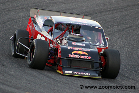 On the outside of Balson is the class points leader, Wally Wilson, driving the No. 69 The Fyre Place sponsored Modified.