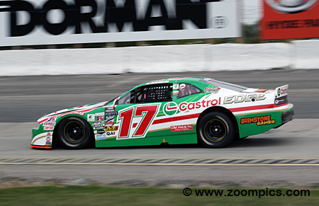 At the drop of the green, the No. 17 Castrol Edge/CIM Metals Dodge Challenger jumped into the lead. He faced pressure from Donald Theetge until Theetge spun on lap 5.