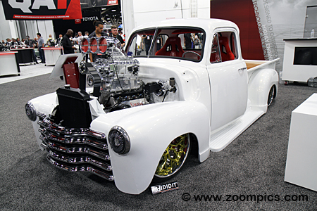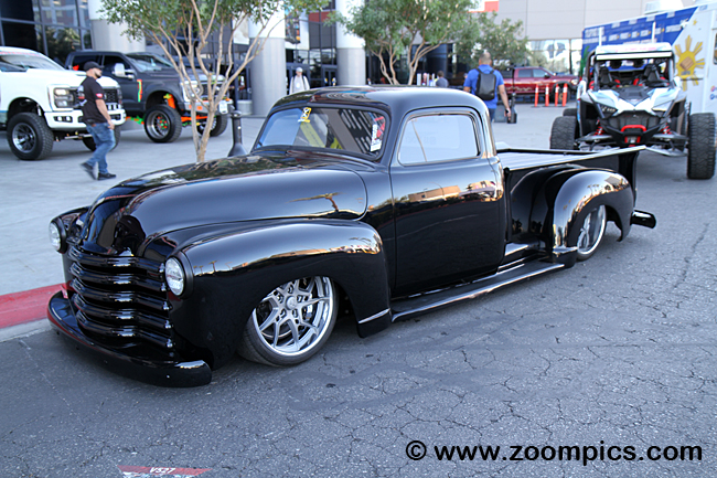 Greasy is a 1952 Chevrolet 3100 built by YO. Sitting on top of the LT1 is a Magnusen MOAB Blower.