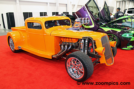 Mickey Thomson tires are mounted on Intro Wheels. The truck is painted Orange Pearl.