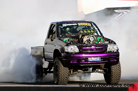 Each venue included vehicles from the Australian Burnout Championship.