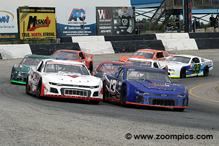 Pacing the field is the No. 13 London Recreational Racing Chevrolet Camaro of the series organizer, Justin Collison.