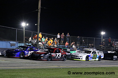 Eight Steel City Rumble competitors line up on Flamboro Speedway’s back straight for round four of the championship.