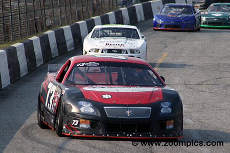 On the pole, courtesy of the invert, is the fourth fastest qualifier Nick Troback in the No. 73 Alexander Glass & Door Cadillac CTS.
