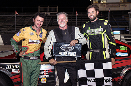 The top three finishers for the fourth weekend of the Steel City Rumble series at Flamboro Speedway.