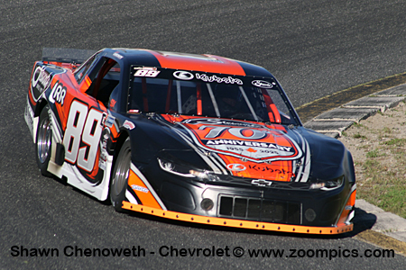 Chenoweth also competes in the Dayco Super Stock and Ontario Outlaw Super Late Model series. He put the No. 89C London Recreational / Stewart’s Chevrolet Camaro on the pole.