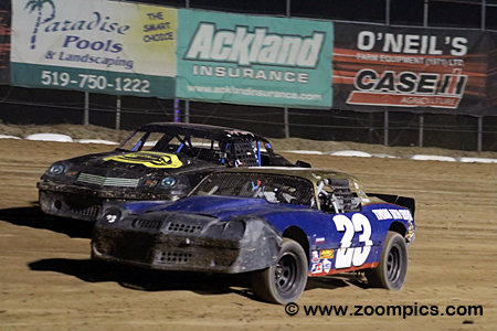 The fourteenth round of the Middleport Mechanical Heating & Cooling Thunder Stock Series was held during the Ontario Agra and Charles Jones Industrial event. Drivers competed in a twenty-lap A-Main around Ohsweken Speedway's 3/8 mile clay oval. |
