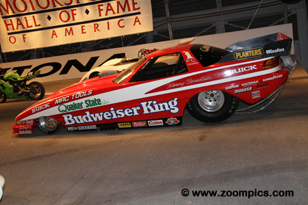 Also mounted on the high bank exhibit is Kenny Bernstein’s Budweiser King Buick Funny Car.