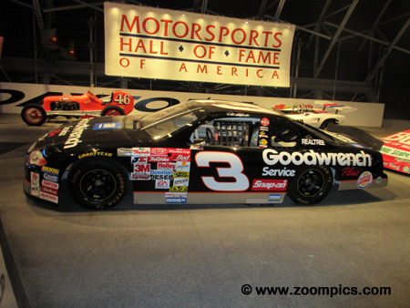 Mounted on a ‘high bank’ display is Dale Earnhardt’s, Chevrolet Monte Carlo.