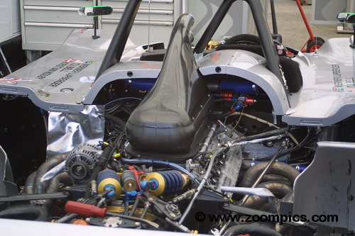 The Ascari KZR-1 chassis is a Carbon / Kevlar composite monocoque with a twin roll-over hoop. The car s front and rear suspension is a double-wishbone design with an inboard spring / shock absorber unit bolted to the monocoque. The engine serves as a stressed member. The vehicle s wheelbase is 2,807 mm, the front track width is 1,164 mm and the rear track width is 1,116 mm. The bodywork is constructed of Carbon / Kevlar composite panels. The Ascari rides on Goodyear tires which are mounted on 18-inch OZ wheels. As per Le Mans Series regulations, the car weighs 900 kilograms. |