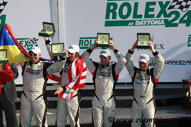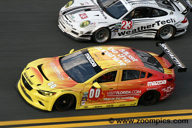 The first test for the new division came at Daytona International Speedway. Entered were three Mazda6 GX from Freedom Autosport and Yellow Dragon Motorsports. The Mazdas were outpaced by the two fastest Porsches, and it got worse from there; they were all in the garage and out of the race by lap 51. The No. 16 Napleton Porsche shared by Nelson Canache, David Donohue, Shane Lewis, and Jim Norman were the fastest qualifiers and started fifty-first overall. The team grabbed the victory, finishing ten laps ahead of the Bullet Racing Porsche Cayman with drivers James Clay, Darryl O’Young, Dan Rogers, Seth Thomas, and Karl Thomson. Third in the GX category was the No. 38 BGB-prepared Porsche Cayman GX, piloted by Lee Davis, Ryan Eversley, Eric Foss, Jeff Mosing, and John Teece.