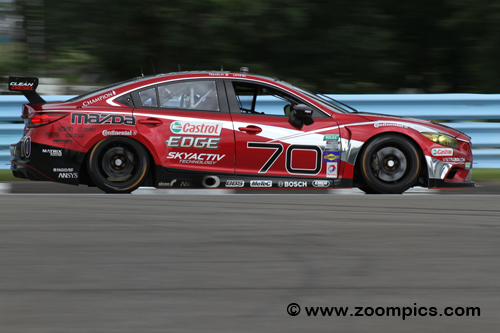 The next event was held at the Mid-Ohio Sports Car Course. After many disappointments, Tom Long and Sylvain Tremblay would start from the pole and grab their first victory in the No. 70 Mazda6 GX. Finishing on the same lap as the winners were Spencer Pumpelly and the points leader, Jim Norman. The last round’s victors, Joel Miller and Tristan Nunez, retired. Watkins Glen International marked the second half of the season. Tom Long and Sylain Tremblay were joined by the Road Atlanta winner, Andrew Carbonell, in the No. 70 SpeedSource Mazda 6. Japanese driver, Yojiro Terada, shared the No. 00 Mazda with Joel Miller and Tristan Nunez. The BGB team consisted of the regular duo of Norman and Pumpelly. They started second in class but recorded their first DNF of the year. The trio of Terada, Miller, and Nunez was victorious.