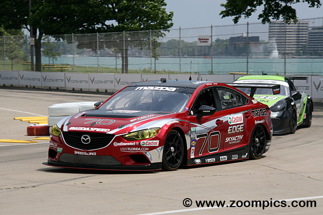 Grand Am teams traveled to Road Atlanta for the next event. It was the same three entries, but with different driver pairings. The points leader, Jim Norman, was joined by David Donohue in the No. 38 BGB Porsche Cayman GX. The No. 70 Mazda line-up remained unchanged with Sylvain Tremblay and Tom Long behind the wheel. The No. 00 entry was piloted by Joel Miller and Andrew Carbonell. Once again, the Porsche qualified on the class pole, but it was Miller and Carbonell that earned Mazda's first GX victory. Norman and Donohue finished in the runner-up spot. After a five-week break, teams took to the track at Belle Isle in Detroit. Miller was paired with Tristan Nunez; the combination was the slowest qualifier, but their No. 00 SpeedSource Mazda scored its second consecutive victory. The winners were followed by Pumpelly and Norman. Tremblay and Long failed to finish.