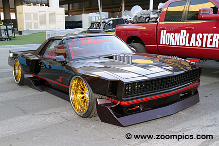 The bodywork on this 1979 Chevrolet El Camino has been extensively reworked with Monte Carlo doors and FIA Group 5-style fender flares.