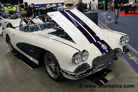 The Corvette body sits on an Art Morrison chassis, with Nitto tires mounted on custom Billet Specialties wheels.